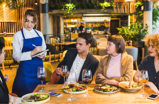 restaurant's dishes and drinks, reflects